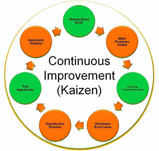 Kaizen is a Japanese term meaning “change for the better” or “continuous improvement. Kaizen sees improvement in productivity as a gradual and methodical process